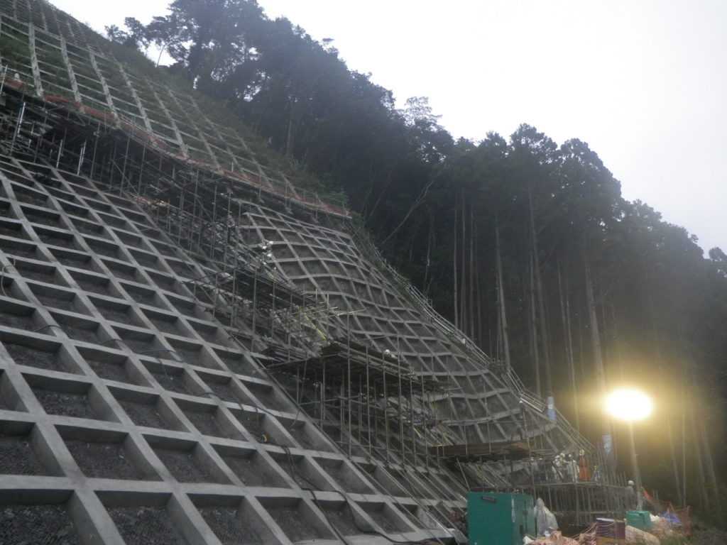 | 【採用工法】 | 吹付法枠工、鉄筋挿入工 |